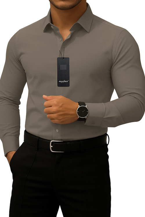 Elegancka szara koszula męska klasyczna długi rękaw 313